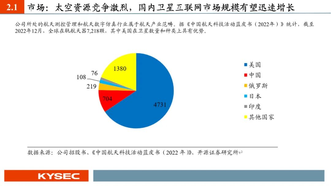 公司所处的航天测控责罚和航天数字仿真行业属于航天产业范畴。现时,天外资源竞争热烈,通讯、导航、遥感等种种卫星快速发展,尤其是低轨卫星互联网星座实在立,列国巨头争相布局。据《中国航天科技举止蓝皮书(2022年)》统计,猖狂2022年12月,寰球在轨航天器7,218颗,其中好意思国在卫星数目和种类上具有上风。靠近着宇宙各航天大国抓续加大航天插足的竞争款式,我国也加速了航天强国确立。其中,我国规模最大的“GW”万颗卫星互联网星座,经营辐照12,992颗卫星,国内卫星互联网产业商场规模有望速即增长。